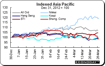 Global markets were mixed in the holiday shortened week. Only the Shanghai Composite was lower in the Asia Pacific region while in Europe, the CAC, DAX, MIB and IBEX succumbed to concerns about the situations in Cyprus and Italy. In North America, the S&P/TSX slipped. March was a tough month in Australia and China while Japan rallied. In Europe, stocks in Italy and Spain declined in March and were down in the first quarter as well. U.S. equities advanced for the week, month and quarter.