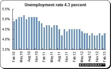The unemployment rate edged up to 4.3 percent from 4.2 percent the month before. Employment increased for a second month and was up 160,000 from a year ago. In February, the number of payroll jobs rose 90,000 from the previous month to a seasonally adjusted 62.98 million, the adjusted number of unemployed was up 1.8 percent to 2.84 million from 2.79 million in January. Medical, health care and welfare services continued to hire workers and construction added jobs. However, factory, retail and transport jobs continued to decline.